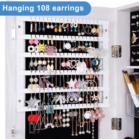 FULL LENGTH REAL MIRROR:The Jewelry Cabinet mirror is 47.2"L x 14.6"W, full length glass mirror offers a head-to-toe view of your outfit,this jewelry organizer is made of real glass and this full length mirror reflects real image.This jewelry cabinet has a flannel lining that protects the jewelry. This glass mirror allows you to conveniently check out all details of your outfit.The black flannel is not easily damaged and easy to care for, does not accumulate dust and does not get dirty easily