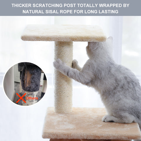 - UNIQUE MATERIAL DESIGN FOR COMFORT: This cat climbing tower is made of compressed wood, faux fur covering and a scratching post wrapped with natural sisal rope. The cat tree provides your feline friend with a fun place for playing, and a way to show off impressive climbing and jumping skills—plus a cozy spot for naptime. The sisal rope covered post keeps your cat from scratching your furniture and your kitten could enjoy sharpening claws with scratching instincts.